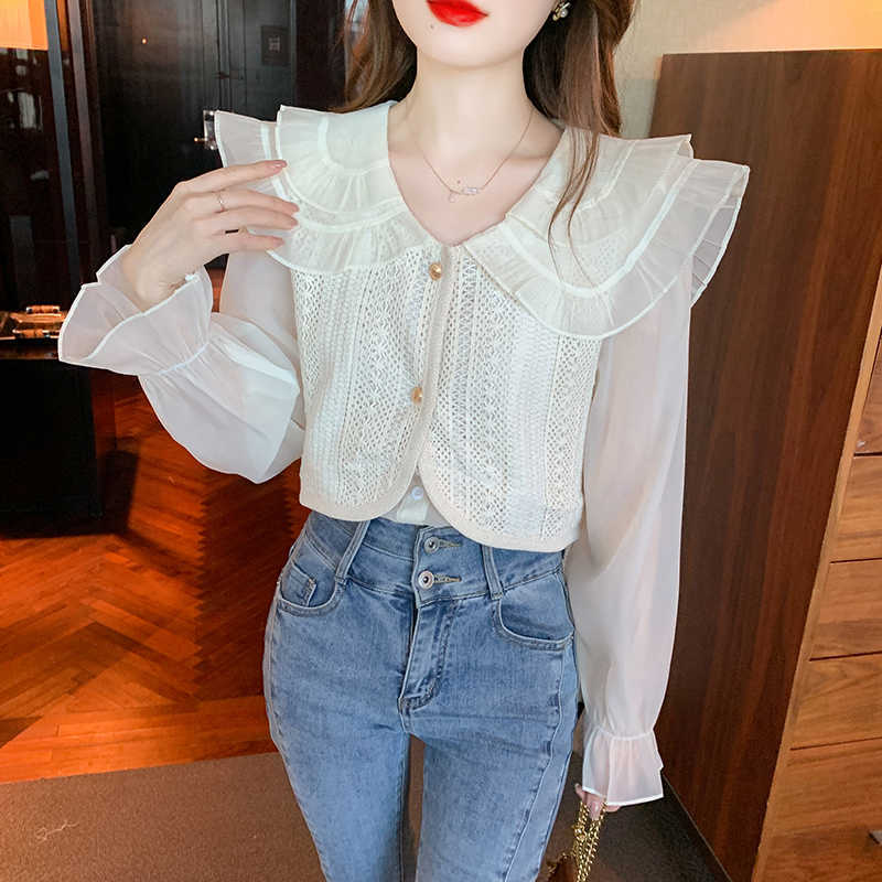 【送料無料】 レディース トップス ブラウス キュート フェミニン フェイクレイヤード 透け感 シアー感 大人かわいい レース フリル 長袖 アイボリー 20代 30代 40代 通勤 通学 オフィス お出掛け 女子会 お呼ばれ 秋冬