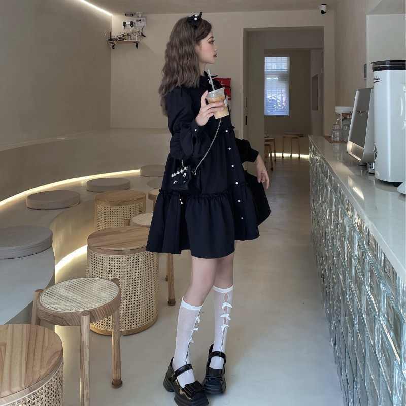 【送料無料】 レディース ワンピース ミニ丈 ショート丈 ティアード スウィート ガーリー 大人かわいい こなれ感 キュート シンプル カジュアル きれいめ 長袖 ブラック 黒 20代 30代 40代 通勤 通学 オフィス お出掛け 女子会 お呼ばれ 秋冬
