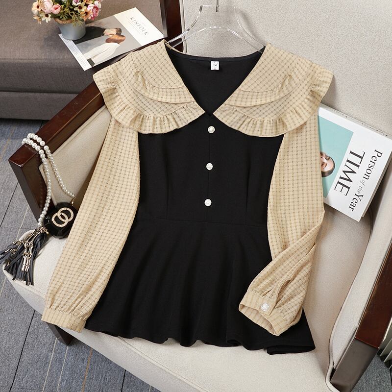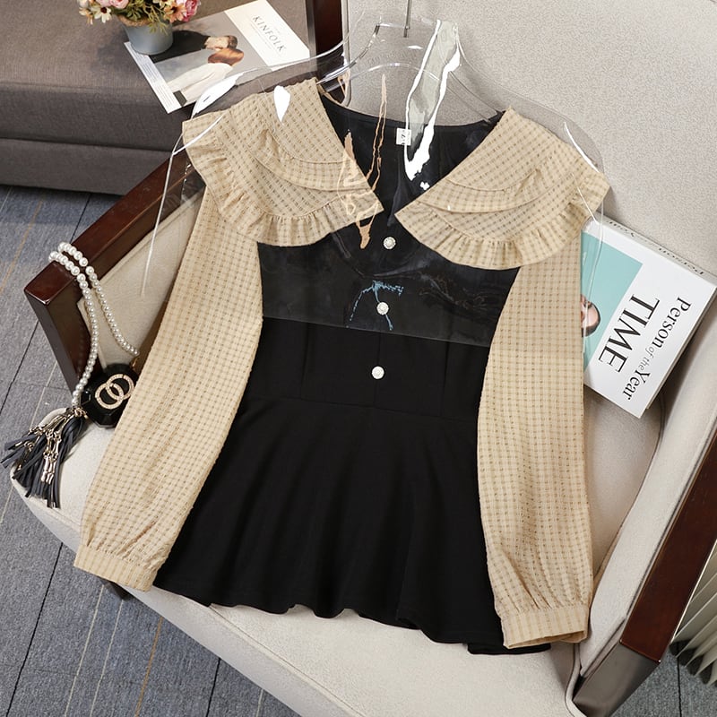 【送料無料】 レディース トップス ブラウス カラー切り替え ドッキング カラーブロック チェック ギンガムチェック シンプル カジュアル レトロ スゥイート キュート 長袖 ブラック 黒20代 30代 40代 通勤 通学 オフィス お出掛け 女子会 お呼ばれ 秋冬