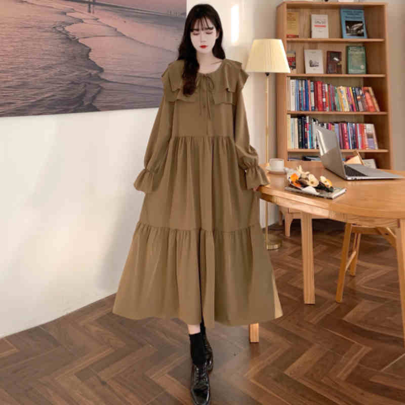 【送料無料】 レディース ワンピース ミドル丈 ミディアム丈 ティアード ふんわり袖 体型カバー こなれ感 キュート スウィート 大人かわいい 長袖 カーキ ブラック 黒 20代 30代 40代 通勤 通学 オフィス お出掛け 女子会 お呼ばれ 秋冬