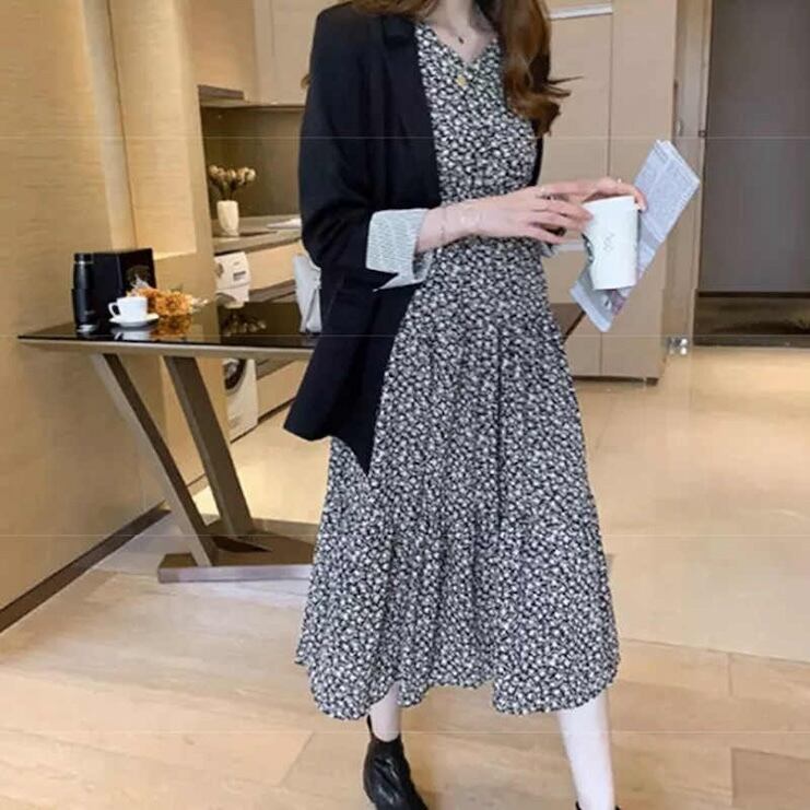 【送料無料】 レディース ワンピース ミドル丈 ミディアム丈 Aライン プリント ティアード Vネック こなれ感 シンプル カジュアル きれいめ 大人かわいい ふんわり袖 体型カバー スタイルアップ 長袖 ブラック 黒 20代 30代 40代 通勤 通学 オフィス お出掛け 女子会 お呼ばれ 秋冬
