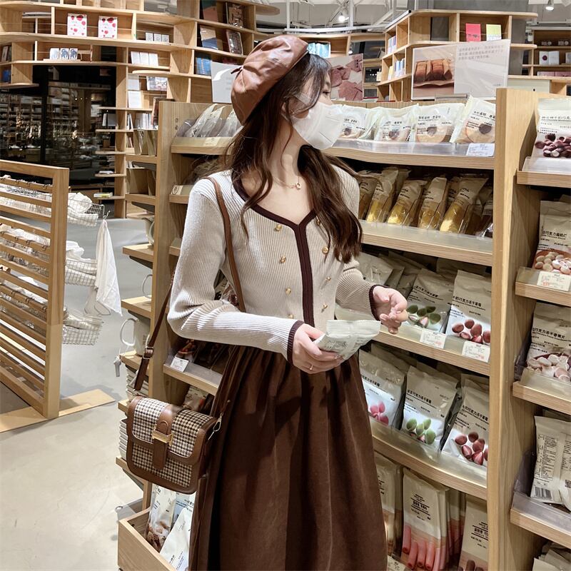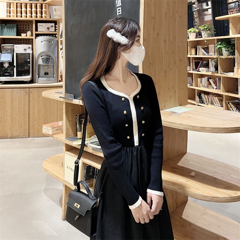【送料無料】 レディース ワンピース ミドル丈 ミディアム丈 モノトーン カラー切り替え こなれ感 体型カバー シンプル カジュアル きれいめ スタイルアップ キュート レトロ 大人かわいい ブラック ブラウン 黒 茶 20代 30代 40代 通勤 通学 オフィス お出掛け 女子会 お呼ばれ 秋冬